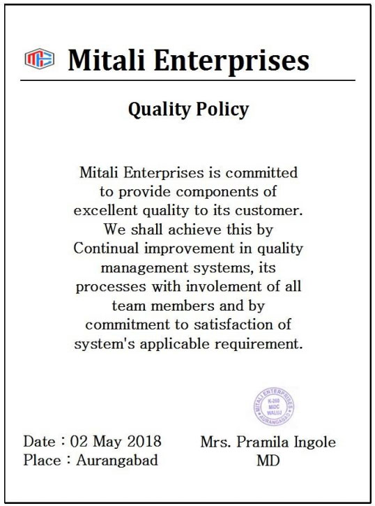 • Quality Policy